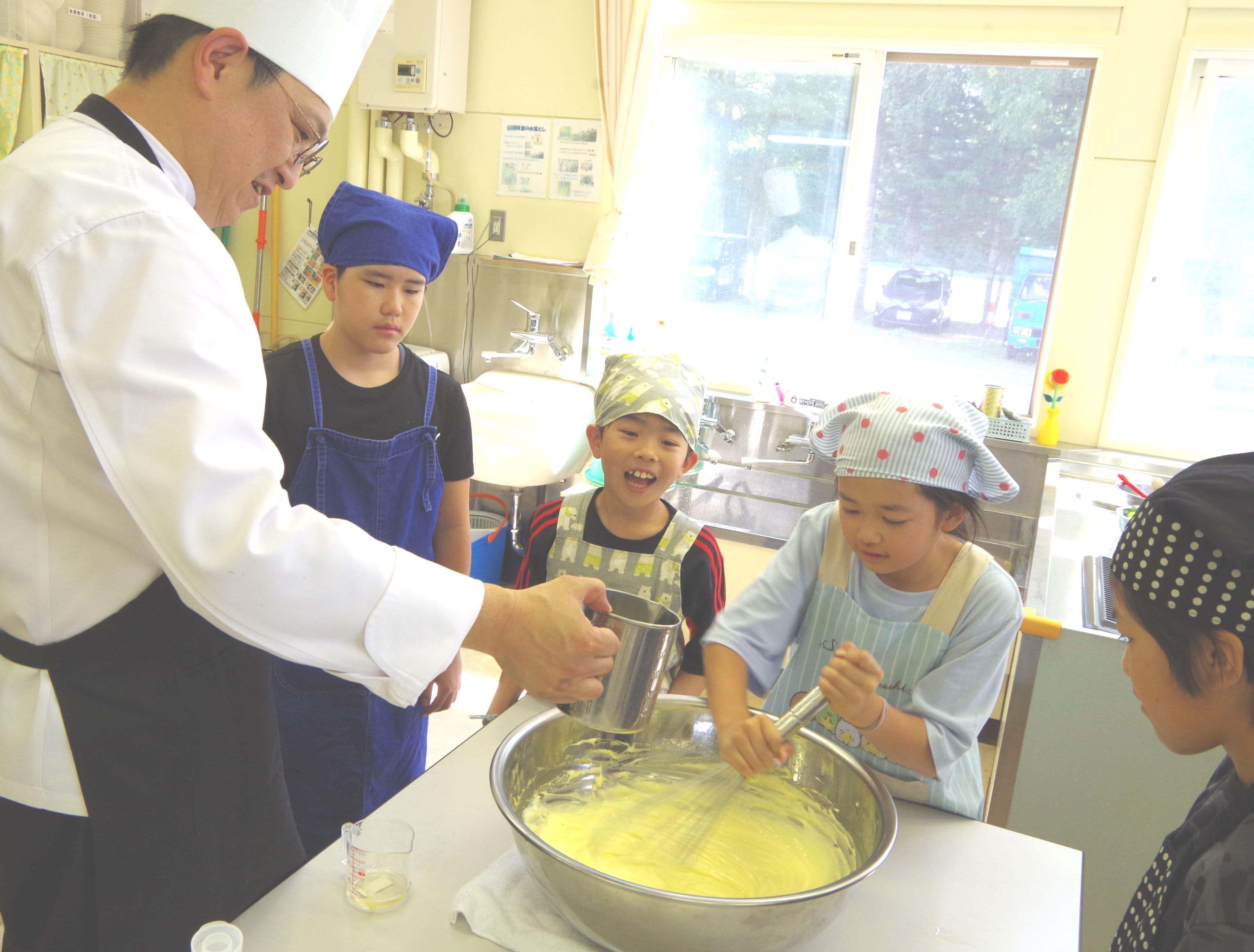 10月13日(金)に地域公開・特認校公開参観日を実施し,来校された方に「料理の哲人に学ぶ食農教育」の3回目をご覧いただきました。今回はいよいよ子どもたちが料理に挑戦。シェフの指導のもと,スープカレー,クラムチャウダー,ポテトサラダ,クレープを作りました。お昼は体育館を会場に来校者全員で試食会。どのテーブルからも「おいしい!!」という声が聞え,子どもたちの料理は大変好評でした。シェフからのお話で,料理には愛が必要だということも学びました。何事も相手意識が大切です。