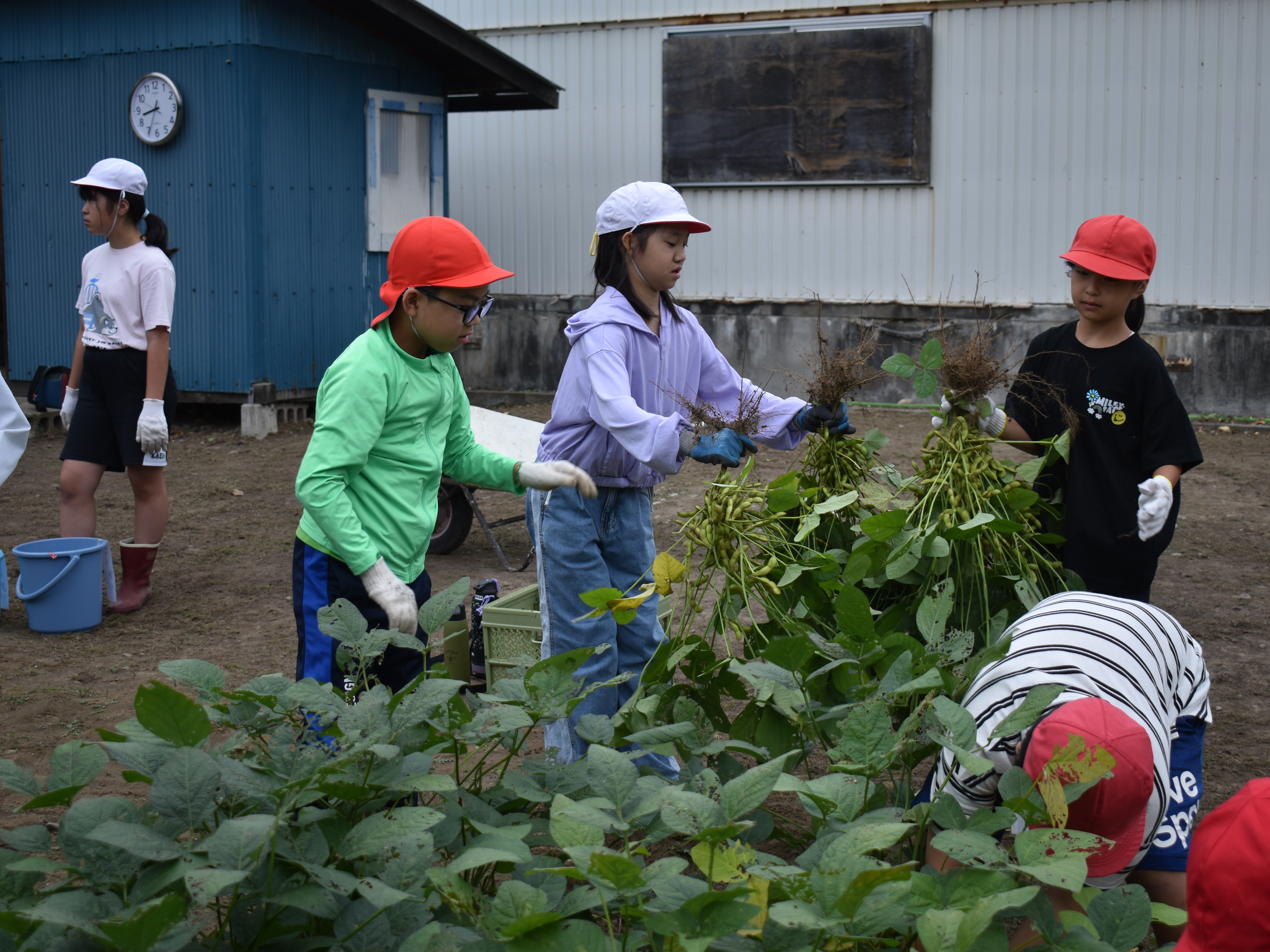 子どもたちの様子から,意欲ややる気が感じられます。高学年のリーダーはもちろん,中学年や低学年の子どもたちも,畑の先生やリーダーに教えられながら自分の役割を果たそうと頑張りました。シェフの皆さんとおいしい料理を作るという目的意識が,自分を動かす原動力になっているようです。